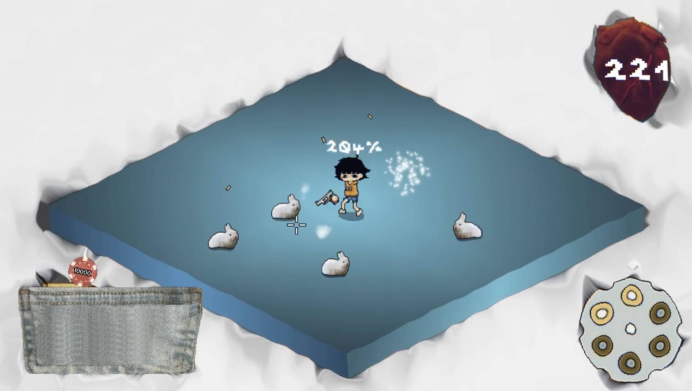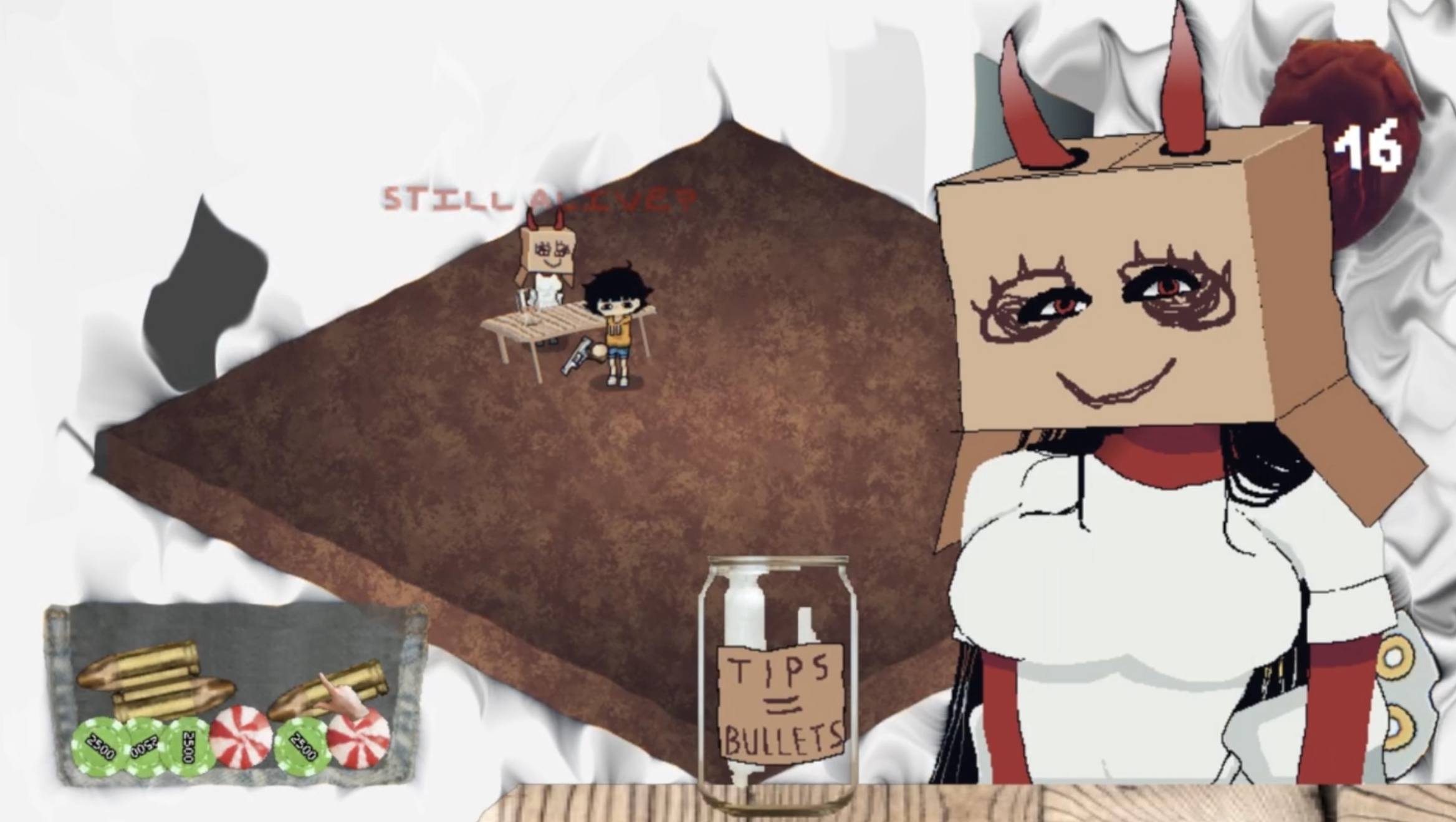 But there’s a sadistic catch—while the Devil slowly devours your soul, the only way to stay alive is to keep your stress levels dangerously high. You’re armed with a cursed bidirectional revolver: a twisted weapon that delivers lethal firepower forward, yet carries a rising chance to fire backward and instantly end your life with every trigger pull.
